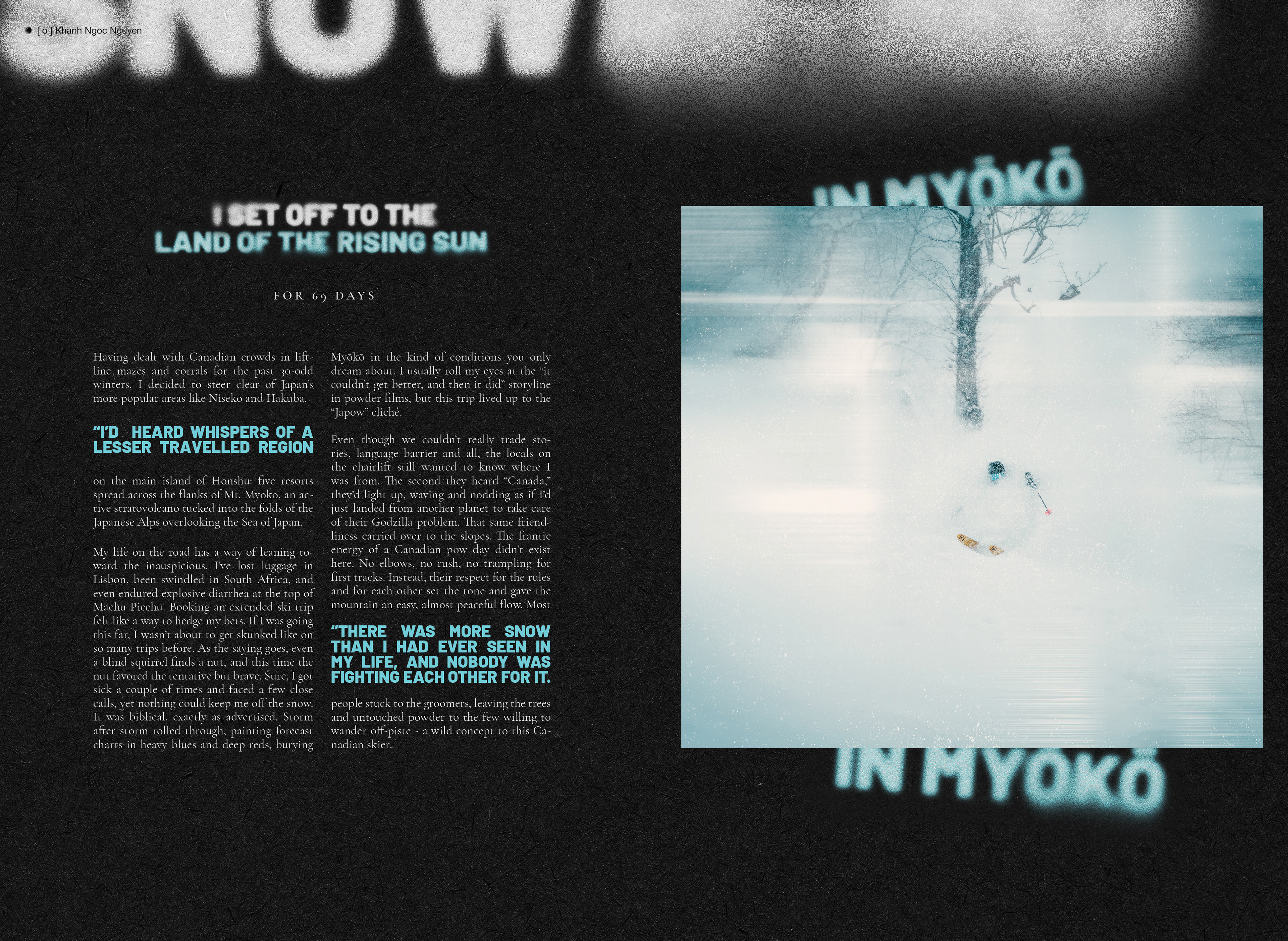 I lead creative direction and visual storytelling for BC Skier, an independent ski publication grounded in British Columbia’s mountain culture. My role spans editorial design, visual identity, and content development, working closely with writers, photographers, and contributors to create authentic, accessible, and culturally relevant storytelling for an engaged outdoor audience.